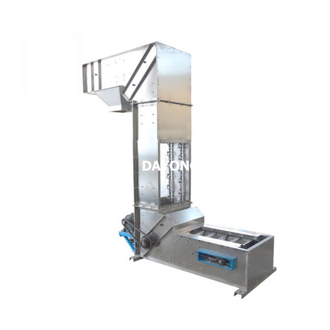 Z shape bucket elevator is the universally lifting conveying equipment. It is mainly made up of Movement part (bucket and traction belt or chain), Upper part with Transmission Drum, Down parts with Tension Drum, Middle Cabinet, Drive Device and so on.